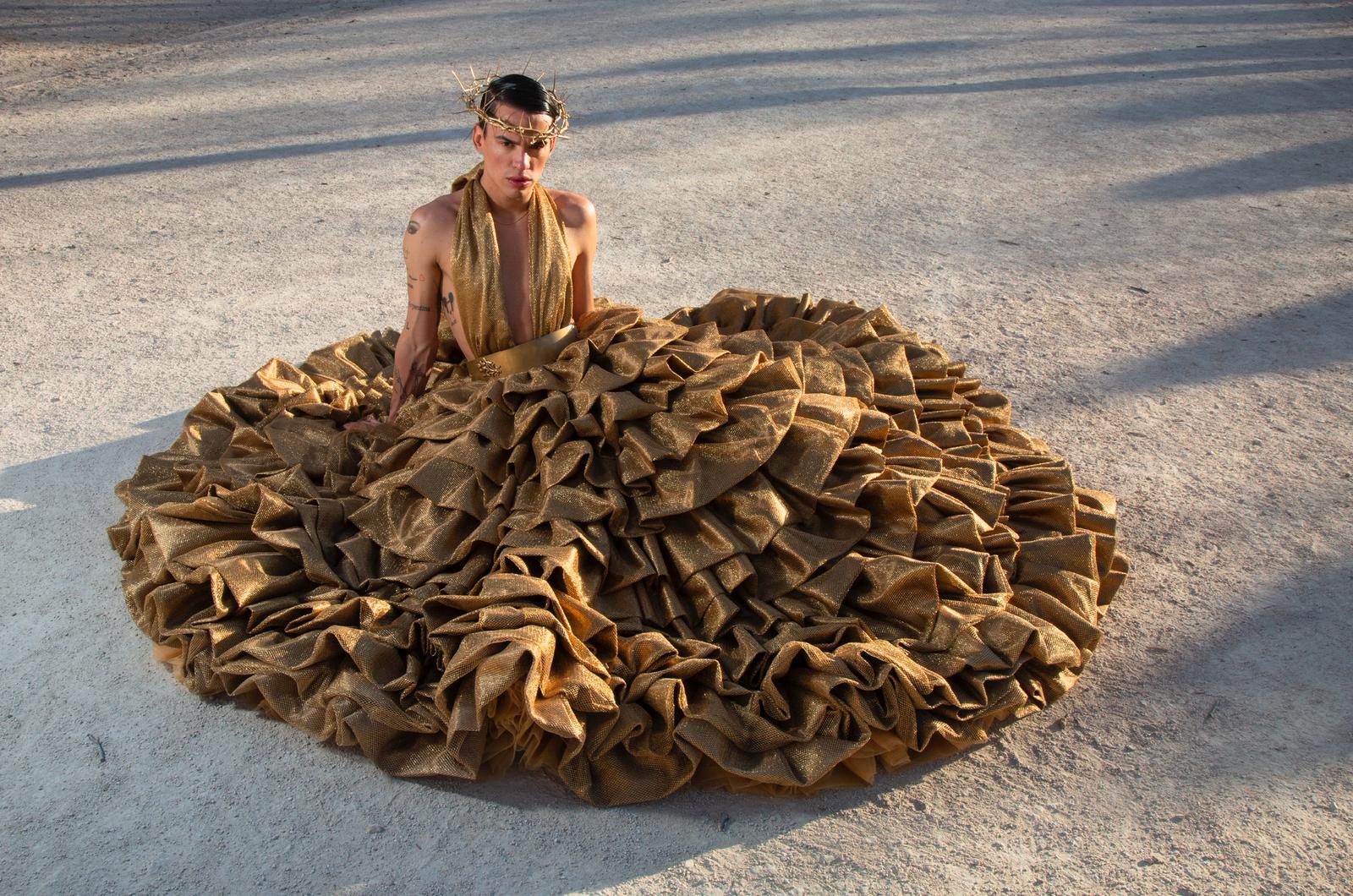 Coñecido pola súa rapidez creativa e a súa capacidade para deseñar pezas de alto impacto visual en tempo récord, a participación de Perea na Mostra supón unha fascinante colisión entre o seu estilo vertixinoso e o “slow fashion” máis puro que representa o milenario encaixe de palillos.