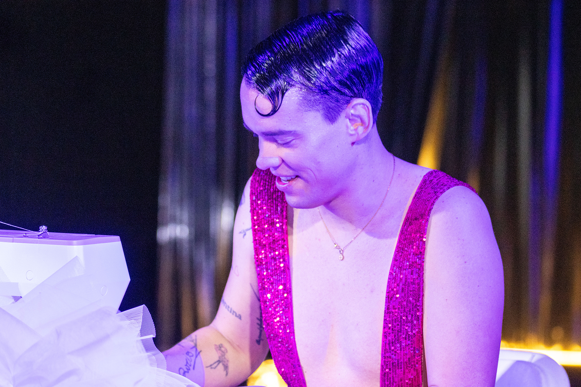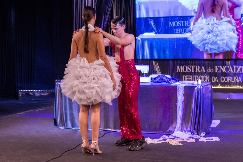 En 20 minutos, mentres o público presente interactuaba con el, José Perea creou desde cero un vestido que logo desfilou co resto de creacións da colección cápsula que presenta no seu primeiro ano na pasarela camariñana.