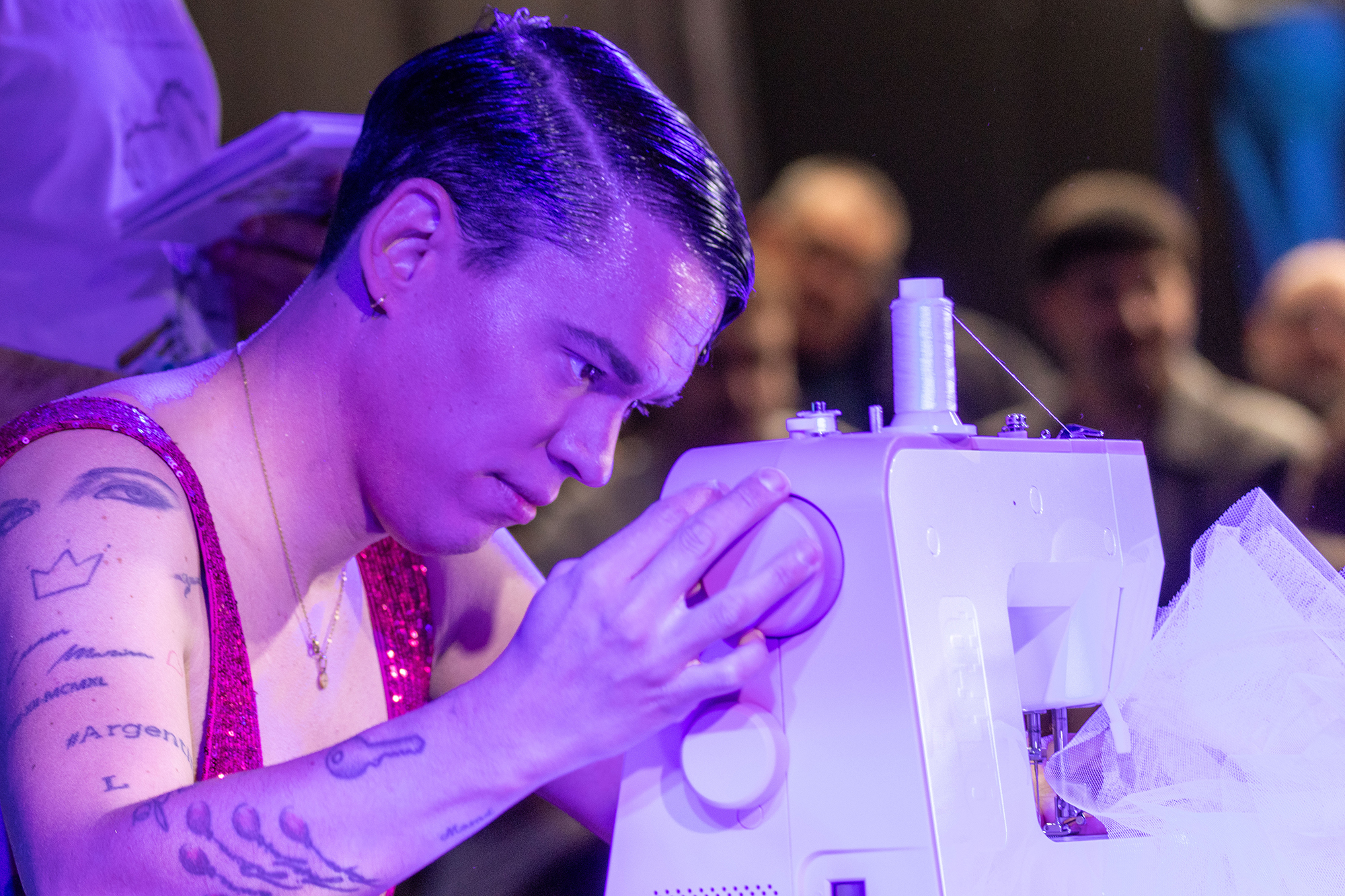 Hoxe o deseñador andaluz José Perea, que tamén participa no desfile de Grandes Deseñadores, levou a cabo na pasarela da XXXV Mostra do Encaixe de Camariñas Deputación da Coruña unha das súas mediáticas demostracións de costura en directo.